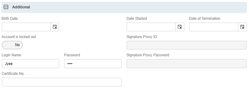 The next section is Additional. If you subscribe to the RB Connect plug-in, enter the resource’s Login Name and Password to set the log-on credentials for this resource. (If you have set your Connect Preferences to Use Email as Login Name, you will not be able to set the Login Name here. Instead, be sure you have an email address entered in the General section above. See Setting Connect preferences: Login.)