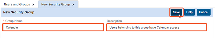 On the left-hand side, click Security Groups. Then on the right, you will see the default Security Groups added to the system. Let’s say we want to create a Calendar Security Group for our calendar users. Click New at the top right.