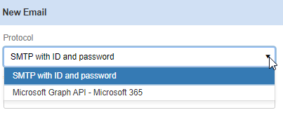 Now, let’s look at the email setup when using Microsoft Graph API - Microsoft 365 as an option.